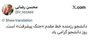 محسن رضایی: صبر راهبردی نیروهای مقاومت میتواند مورد تجدید نظر قرار بگیرد/ رژیم صهیونیستی در حال سوءاستفاده از آتشبس و دیپلماسی است